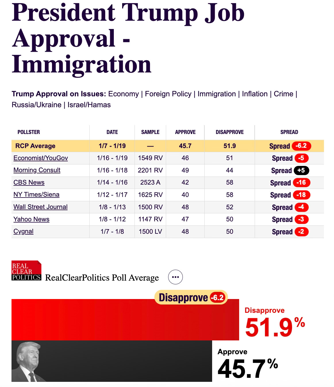 Why is the White House pursing a strategy that is costing the president and his party support with key aspects of its base on an issue that won them the election? These losses are well documented in the public polling, with the latest Realclearpolling average showing the president is 6% underwater on immigration. As a recent headline from Axios showed, it is also evident in the White House’s private polling as well: “Trump’s immigration erosion worries his team.”